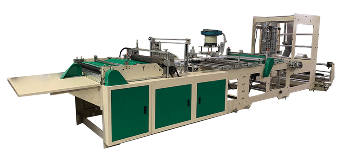 該機適應于BOPP、OPP、CPE、PE、PP、PVC等薄膜進行自動連續(xù)加工拉鏈袋,拉鏈手挽袋等,產(chǎn)品廣泛應用于服裝、文具、精品包裝等方面。采用雙伺服電機無拉力控制與微電腦控制系統(tǒng),意大利TL50光電眼跟蹤配合控制,主機采用變頻器進行調(diào)速,使制袋平穩(wěn)、封切準確。采用日本松下PLC控制系統(tǒng)控制。采用高精度控溫儀自動控溫,使不同厚度的膜都能保證封線牢固美觀。供料系統(tǒng)采用無自動張力控制系統(tǒng),勻速送料控制,送料均勻平整;出料輸送采用優(yōu)質(zhì)輸送皮帶及進口變頻器調(diào)速,使出袋平穩(wěn)可靠。熱切刀采用進口耐熱鋼鍛造、高溫加熱不易變形、不粘刀、封輥采用耐高溫硅膠材料;電腦控制系統(tǒng)具有自動計數(shù)、累計數(shù)、提前報警、暫停等功能、自動控制開停機、自動化程度高。備有靜電消除裝置,易于收疊塑料袋。配備昆侖通泰7寸觸摸屏控制系統(tǒng)。本機備有氣動打孔,氣動沖手挽,超聲波封口等功能,操作方便簡單、速度快、生產(chǎn)的產(chǎn)品尺寸精確,封線牢固美觀,質(zhì)量穩(wěn)定,自動化程度高的特點。
